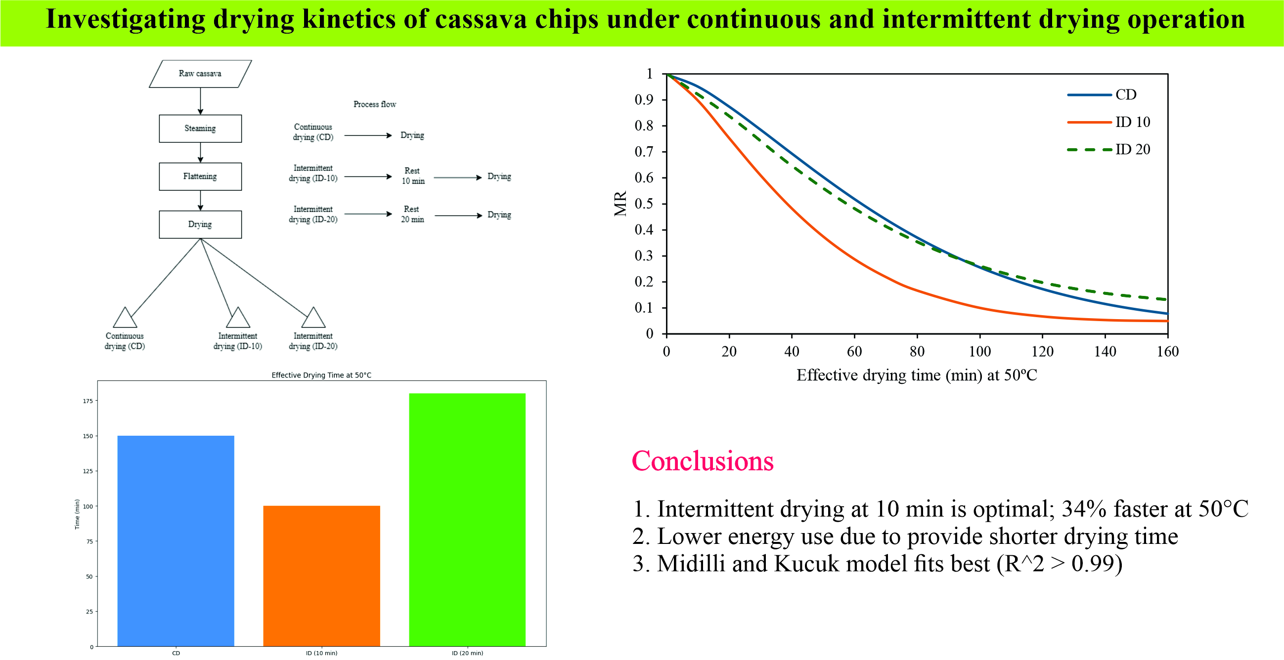 Investigating drying kinetics of cassava chips under continuous and intermittent drying operation