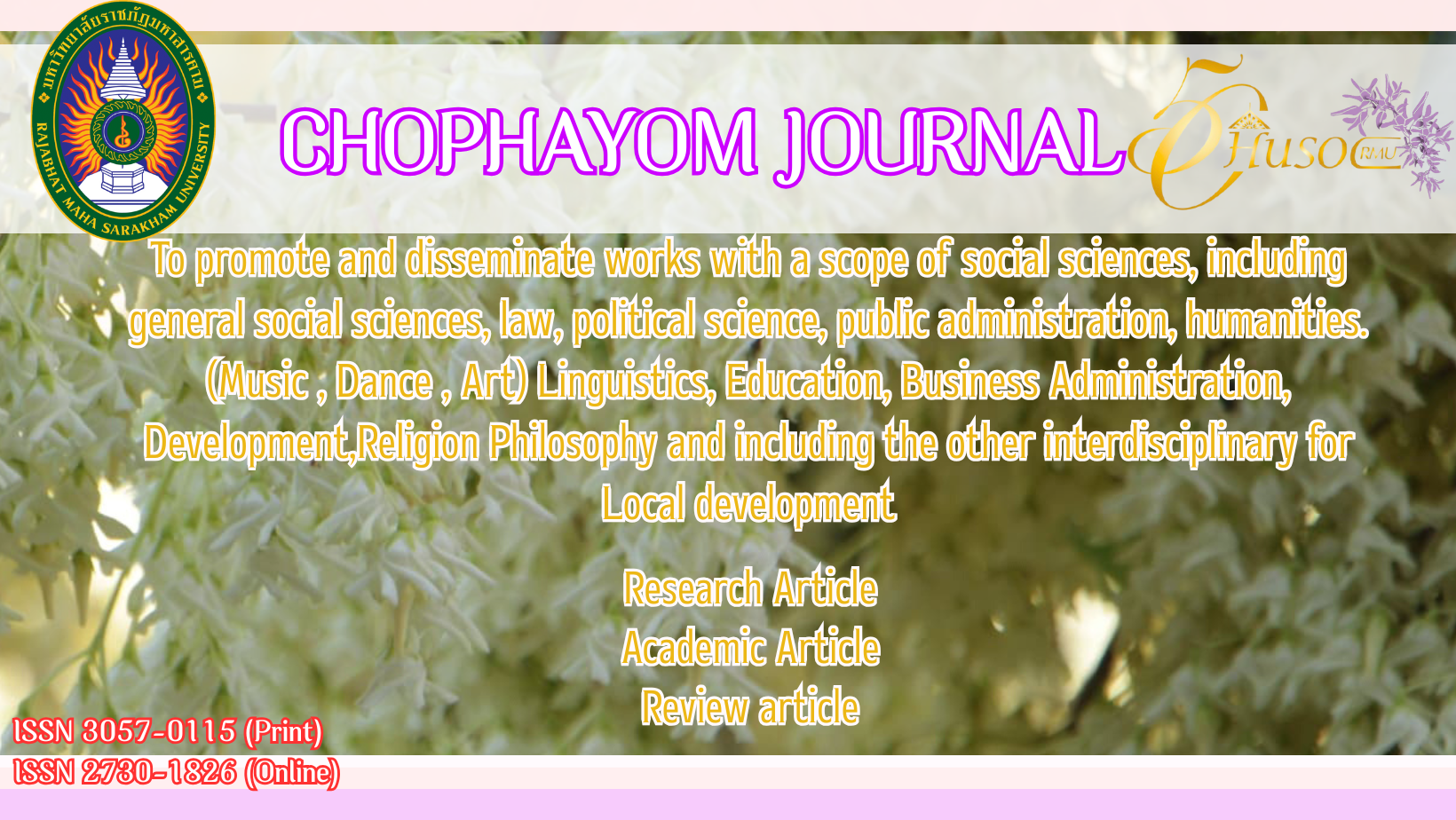 Chophayom Journal is established to promote and disseminate scholarly works within the following scopes: