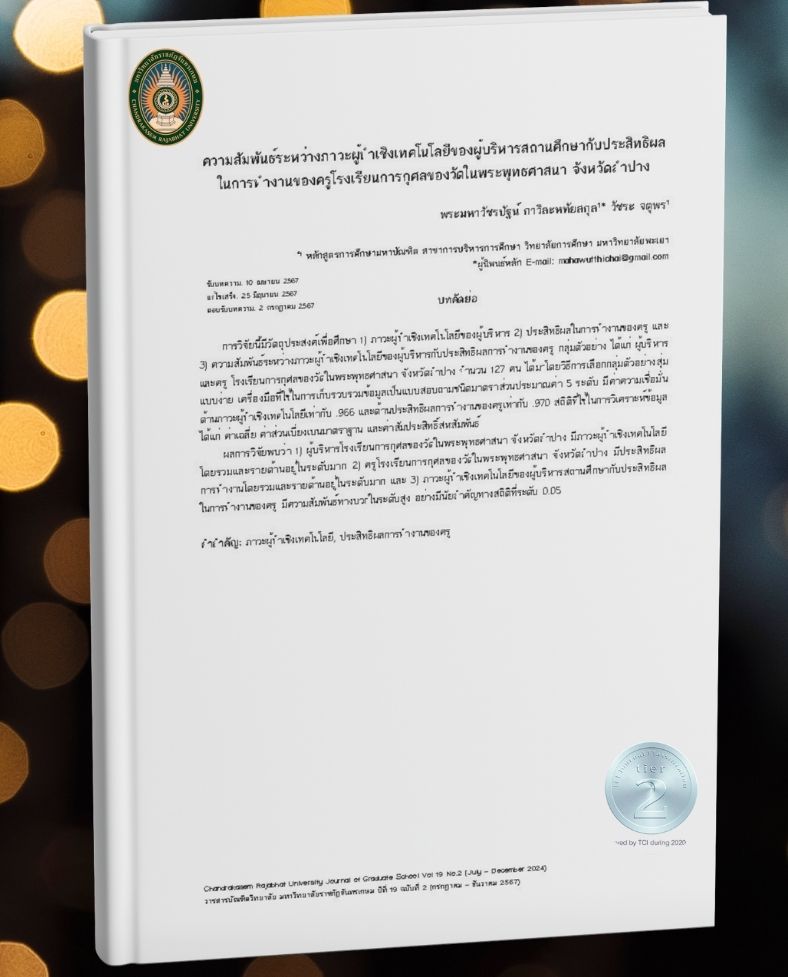 ความสัมพันธ์ระหว่างภาวะผู้นำเชิงเทคโนโลยีของผู้บริหารสถานศึกษากับประสิทธิผลในการทำงานของครูโรงเรียนการกุศลของวัดในพระพุทธศาสนา จังหวัดลำปาง
