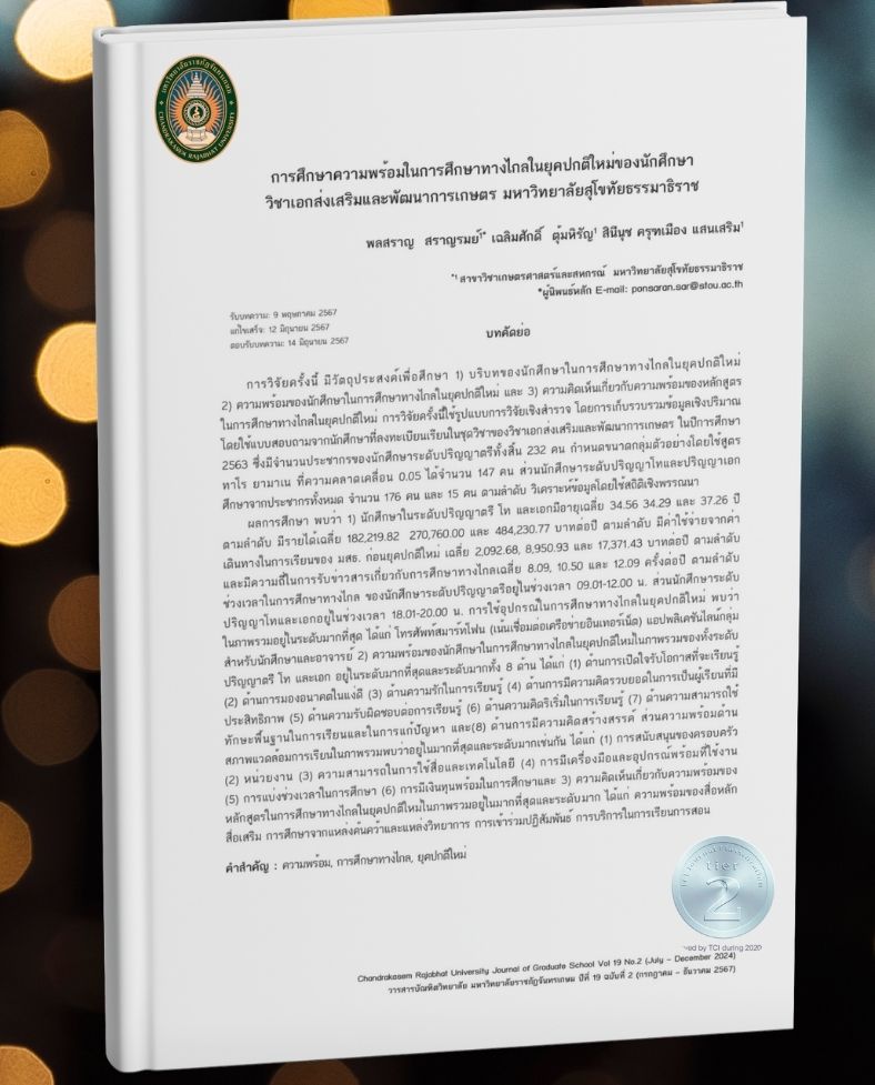 การศึกษาความพร้อมในการศึกษาทางไกลในยุคปกติใหม่ของนักศึกษา วิชาเอกส่งเสริมและพัฒนาการเกษตร มหาวิทยาลัยสุโขทัยธรรมาธิราช
